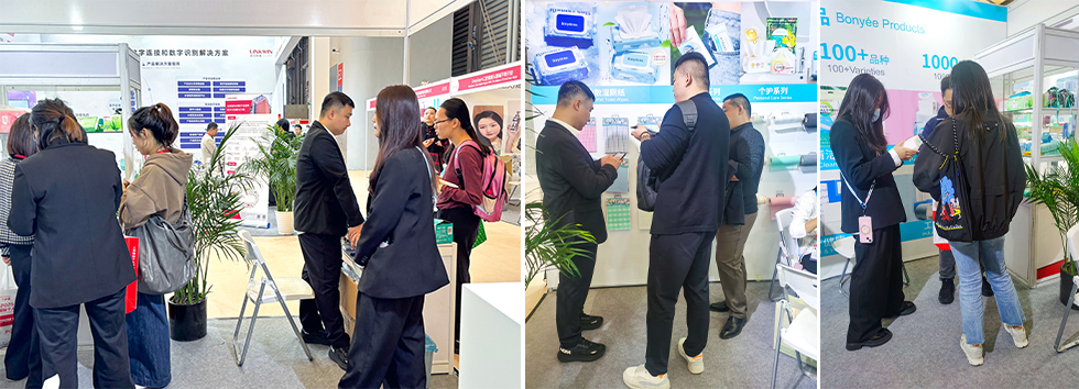 在竞争日趋激烈的全球个护市场,创新与品质成为品牌赢得认可的关键。邦怡为此番参展做了充分准备重点展示了其个人护理系列产品,包括洗脸巾、湿巾、湿厕纸、宠物湿巾等多样化样品。其中,可冲散系列和珍珠纹系列小卷产品凭借其环保理念与卓越的使用体验,吸引了大量咨询、深入洽谈。